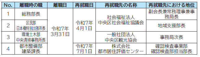 令和7年8月末日までに、「中央区職員の退職管理に関する条例」第3条に規定する届け出を行った者(ただし、すでに公表した者は除く)