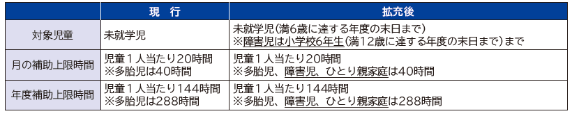 東京都が認定したベビーシッターを利用した際の利用料の補助について、10月1日利用分から障害児およびひとり親家庭の児童に対して、別表のとおり拡充を行いました。