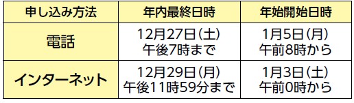 ※申込順のため、申込日によっては年内に収集ができない場合があります。早めにお申し込みください。