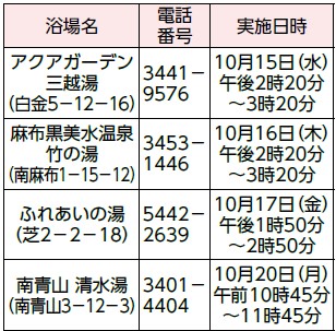 申込み:電話または直接、実施日の前日までに、希望する銭湯へ。当日、区民であることが分かるものをお持ちください。
