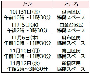 申込み:電話または直接、10月18日(土)までに、虎ノ門いきいきプラザへ。当選者のみ、10月19日(日)以降に電話で連絡します。