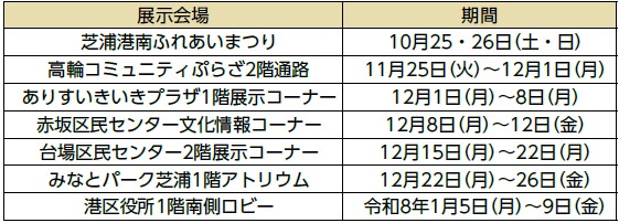 表2 令和7年度港区明るい選挙啓発ポスター展示会予定表