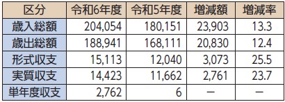 令和6年度決算額は、前年度と比べ、歳入・歳出ともに増加しました。