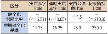 ※早期健全化基準とは、財政状況の悪化により、自主的かつ計画的に財政の健全化を図るべき基準をいい、早期健全化基準以上の場合には財政健全化計画の策定が義務付けられます。