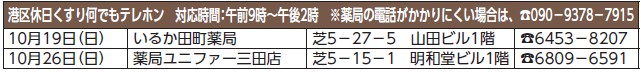 薬の相談 ※日中、夜間とも区内在住者に限ります。