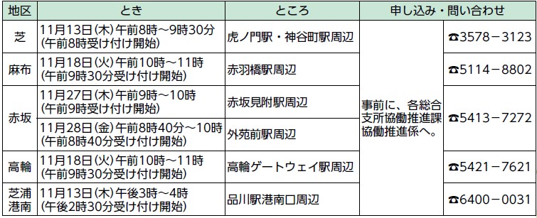 清潔できれいなまち、誰もが快適に過ごせるまちの実現のため、地域の町会、自治会、商店会、企業、その他団体等と連携して、清掃活動やみなとタバコルールの周知啓発を実施します。どなたでも参加できます。