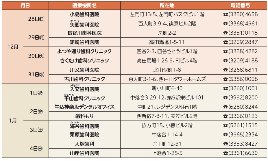 休日診療所(内科・小児科)・休日歯科当番医のご利用を