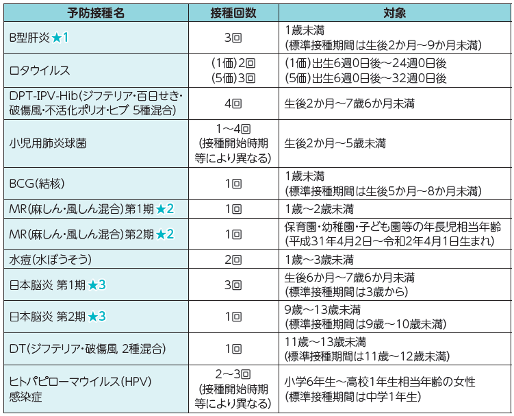★1 母子感染予防として、健康保険でB型肝炎ワクチン接種を受けた方は定期接種の対象外です。