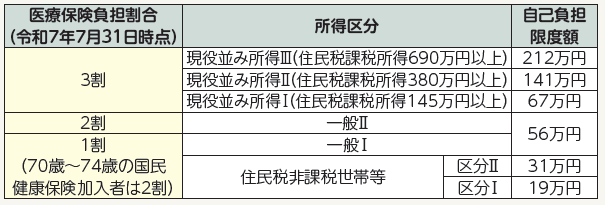 ※「70歳未満の方がいる国民健康保険と介護保険に加入している世帯」では、限度額が異なります。詳しくは、医療保険年金課国保給付係へお問い合わせください。