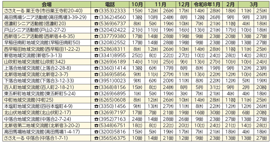 ※初めて利用する場合や、ささえーる中落合を利用する場合は、住所・氏名・年齢が確認できるもの(マイナンバーカード・運転免許証・健康保険証等)をお持ちください。