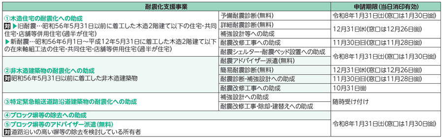 災害に強いまちづくりに向けてさまざまな支援(下表)を行っています。