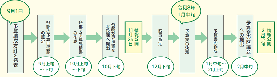 区では現在、令和8年度の予算編成作業を進めています。今回は、実行計画事業について、8年度予算見積もりの概要をお知らせします。見積もり額は10月末時点のもので、変更になる場合があります。なお、下記の施策以外にもさまざまな事業等に予算を計上しています。