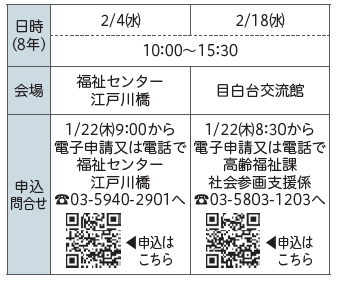 会場・申込・問合せ:1月15日(木)から電話で保健サービスセンター【電話】03-5803-1805へ
