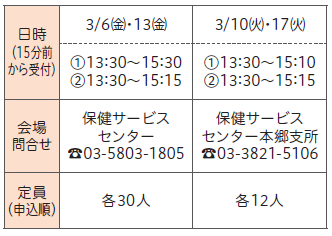 会場・問合せ:保健サービスセンター本郷支所