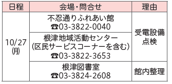 ※根津図書室は、10/20(月)9:00〜17:00臨時開館