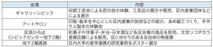 産業団体・伝統工芸会による技術の紹介やワークショップのほか、区内商店・連携自治体による物販、産学連携ポスターの展示を行います。さらに、昨年度好評だった各会場を巡る謎解きイベントも実施します。ぜひ、この機会に区内の産業を実際に見て、触れて、体験してみませんか。