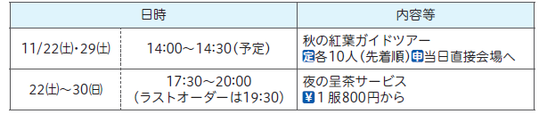 日時:11月22日(土)~30日(日)午後5時30分~8時(最終入場…午後7時30分)