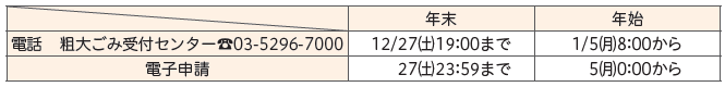 申込:電子申請又は電話で粗大ごみ受付センターへ