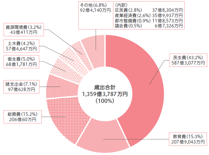 コミュニティバス運行、区民会館、公会堂、スポーツ施設の運営などに