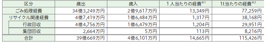 ※2 各経費の(歳出-歳入)÷各回収量の数値
