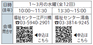 日時:8年1月8日~3月12日の木曜午前10時30分~正午