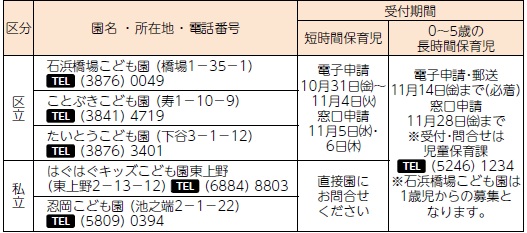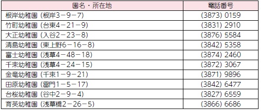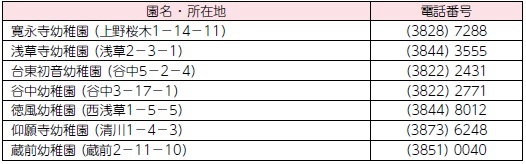 問合せ:〒110-8615 台東区役所児童保育課(区役所6階(8)番)