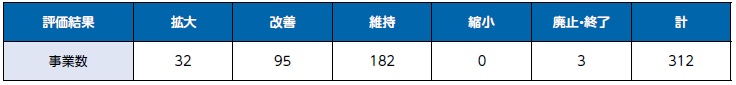 7年度は、「台東区行政計画(令和5~7年度)」に位置付けている計画事業を構成する事務事業を対象とし、312事業を評価しました(表2)。