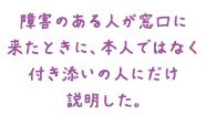 話し合いを通じて、障害のある人と事業者がお互いの立場や要望を理解し、一緒に対応策を考えることが大切です。