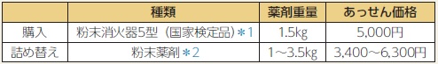 ※消火器の種類・状態によっては、詰め替えできない場合があります。