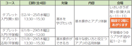 ※パソコン・タブレット・スマホ教室それぞれ1コースのみ申し込み可。