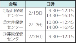 問合せ:各保健センター