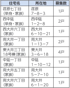 申込用紙配布場所:住宅課(本庁舎6階)、地域センター、文化センター、サービスコーナー、品川宅建管理センター