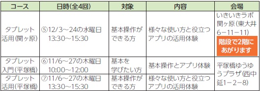 ※パソコン・タブレット・スマホ教室それぞれ1コースのみ申し込み可。