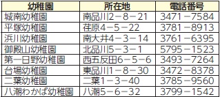 申込書等配布場所:各区立幼稚園、保育入園調整課(第二庁舎7階)