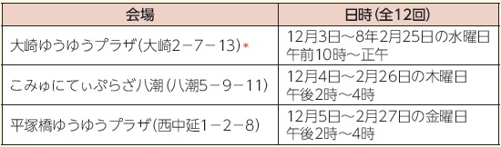 *2月11日のみ大崎第二区民集会所(大崎2-9-4)で実施。