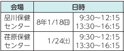 場所・申込み・問合せ:電話で、荏原保健センター【電話】5487-1311へ