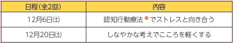 職場や家庭生活などでのストレスや抱えている問題に対して、柔軟な考え方や対処方法を学びます。参加者同士の意見交換も行います。