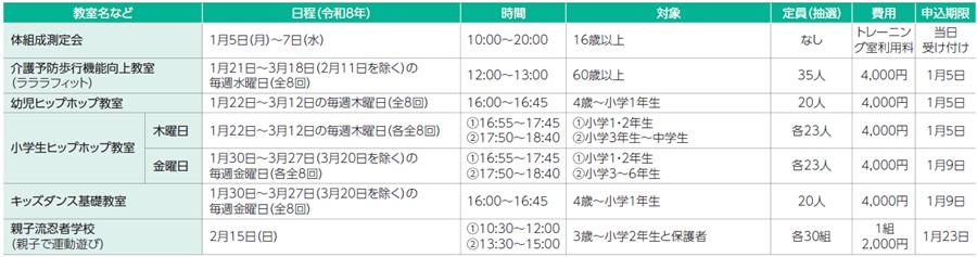 この他にも募集している教室などがある場合があります。
