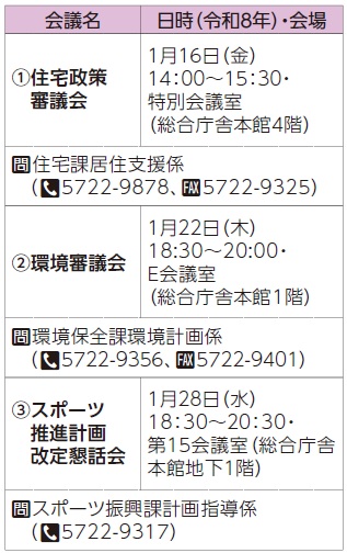 ※傍聴希望者は(1)(2)当日会場へ、(3)開催については当日お問い合わせください