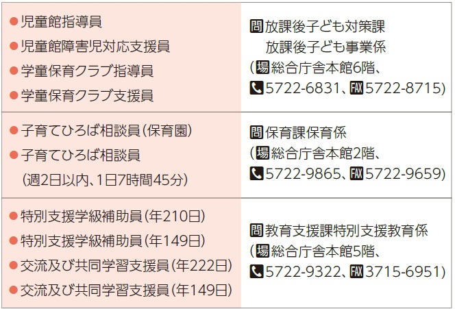 会計年度任用職員とは、地方公務員法の規定に基づき、一会計年度(4月1日~翌年3月31日)の期間の範囲内で、あらかじめ任期を定めて採用する職員です。いずれも、令和8年4月からの任用の募集です。詳細は区ウェブサイトから、各職の募集要項をご覧ください。