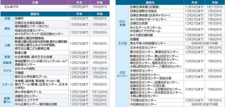 年末年始の業務案内は、区ウェブサイトでご覧になれます。