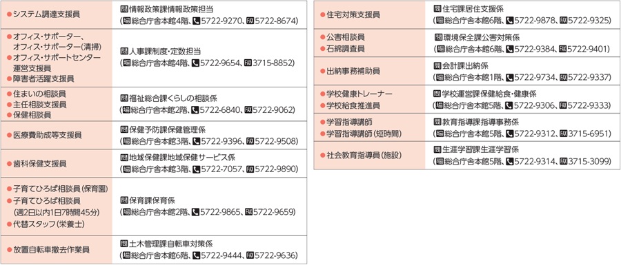 地方公務員法の規定に基づき、4月1日~翌年3月31日の範囲内で、あらかじめ任期を定めて採用する職員です。詳細は区ウェブサイトから、各職の募集要項をご覧ください。