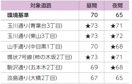 騒音・振動を調査した結果、騒音は、環境基準を超過する地点がありました(右表★印)。振動は、全ての地点で国が定める基準値(要請限度)以下でした。