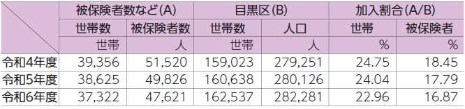 年度別被保険者数など(各年度末現在。世帯数・人口は各年度の翌年度4月1日現在)
