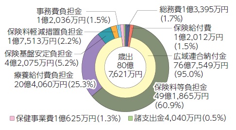 歳出は、制度の運営(医療給付など)を行う広域連合への納付金(各種負担金)が大半を占めています。