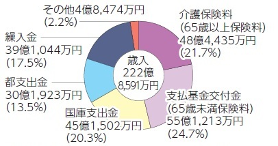 歳入は、介護保険料や国・都からの支出金、一般会計からの繰入金などで賄われています。前年度と比べ、約1億円(0.5%)増加しました。