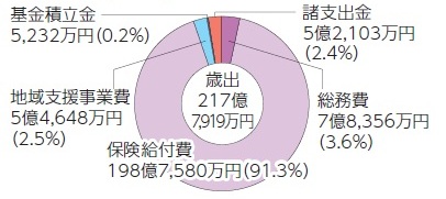 歳出は、前年度と比べ、約千万円(0.3%)増加しました。