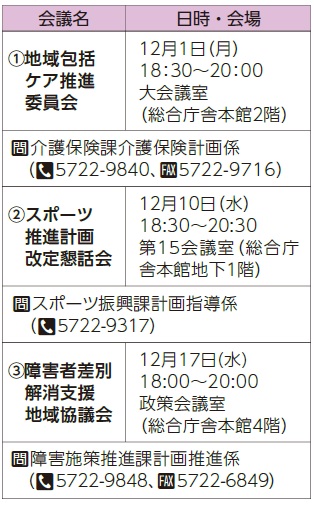※傍聴希望者は、(1)(2)当日会場へ、(3)12月2日までに予約