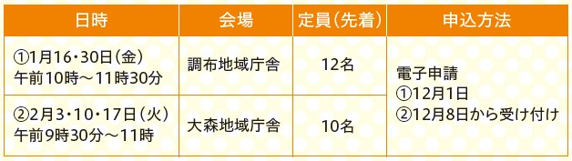 申込方法:会場へ申請書(区HPから出力)を持参
