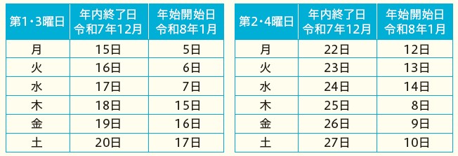 令和7年12月:30日(火)まで通常通り収集